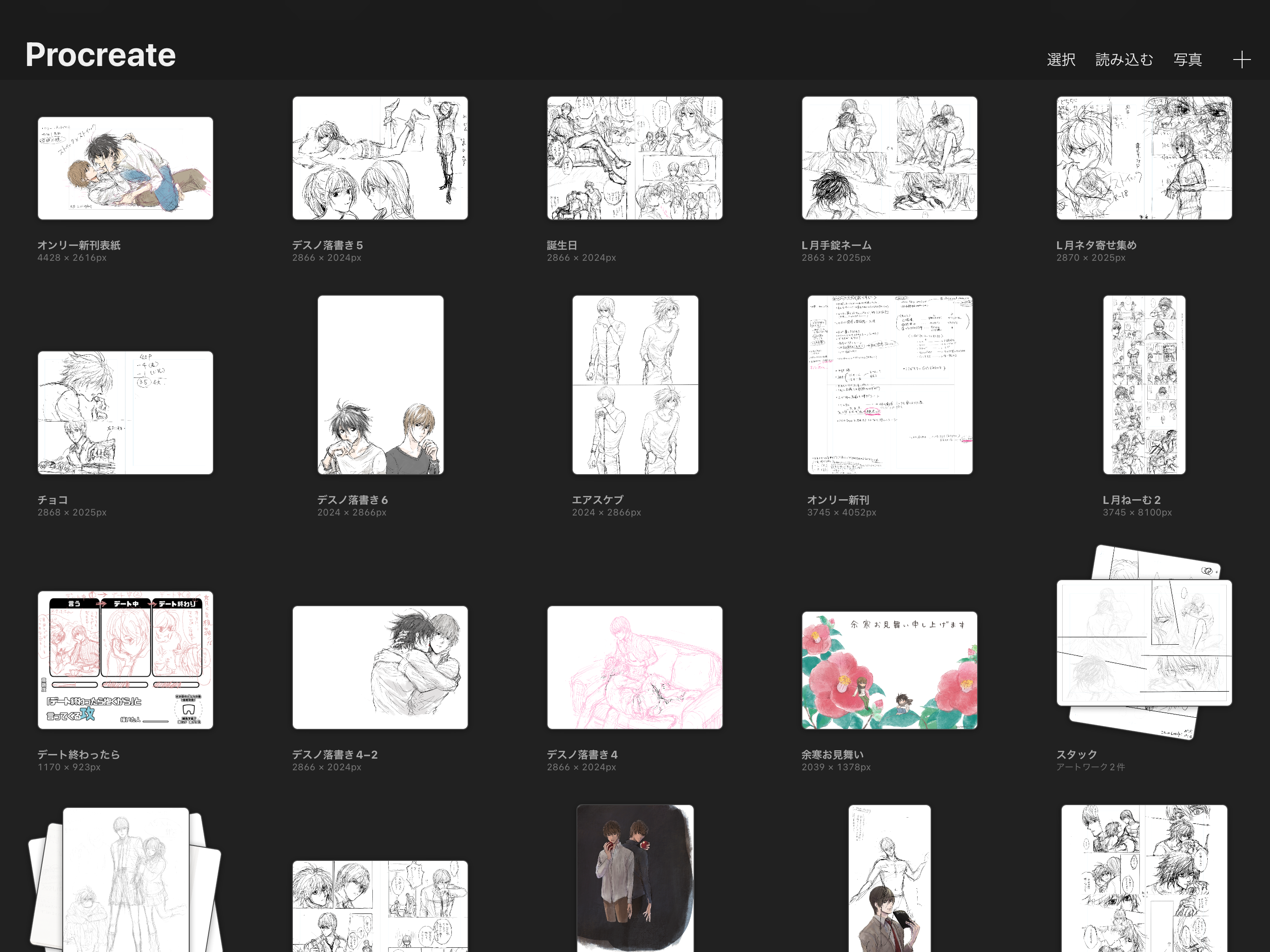 しかもこのファイルごとに、途中まで描いた未完成のネームがレイヤーで数個ある。こんなの描いたっけ状態…自分で描いておいてあれだけど、かわいいのもあるので、なんで途中でやめたの?て感じ。力尽きたんだろうけど…